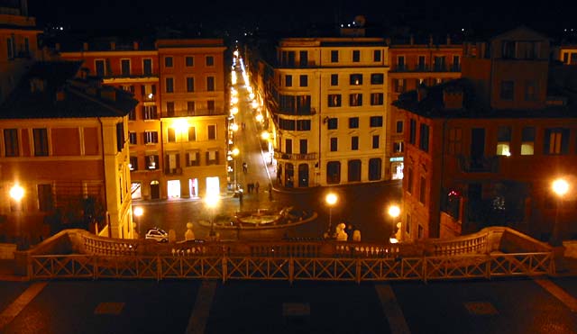 The view from the top of the steps. One block up the street straight ahead leads to "Via del Corso". When designer brands have "New York, Paris, Rome" written underneath their labels, this is the street the "Rome" is referring to. Overpriced for tourists - even my cheap ass dropped 85 euro (roughly 87 USD) on a pair of adidas'. Allright, technically my girlfriend put them on her credit card.