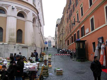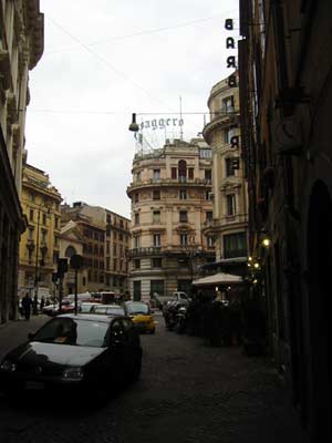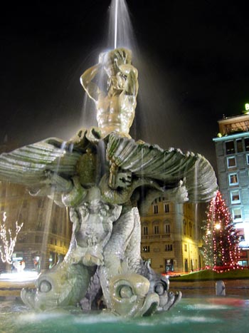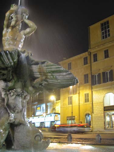 The simplest pasta dish in Italy is amazing. We had buffalo cheese (mozzarella made from buffalo milk) and pasta w/sausage & tomato sauce. We headed back to the internet cafe in Barberini after dinner, this is the fountain in Piazza Barberini.