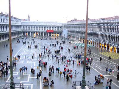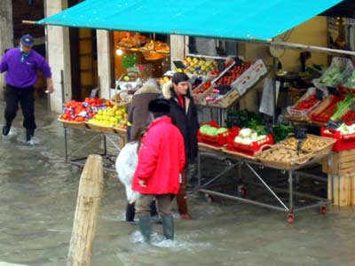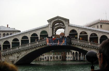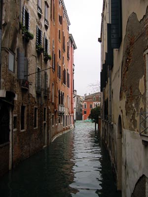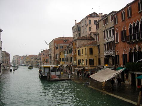 The next morning quite a few streets were completely flooded; like this one right next to our hotel on the Grand Canal. We had to find an alternate route, most locals wear knee high boots and just walk right through it. In some places they have temporary sidewalks made of wooden planks for tourists; which by the way there are tons of... This place is so surreal it's like one giant ride at Disney World.