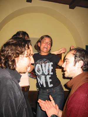 We slept most of the day and ended up at a bar near the colloseum for a friend of Siobhans' birthday. All these locals speak english, and the birthday dude, Andrea (in the yellow sweatshirt) spoke with a british accent because he learned english in England. Multi linguals make you feel like an undereducated ass. Italian brits are hysterical.